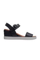 Comfortable flexible sandal with leather-look upper and quilted leather-look covered wedge