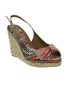 Summery platform wedge with plaited straw-look covered wedge and bow trim