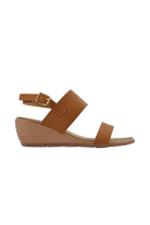 Pin punched leather-look sandal on flexible wedge with a memory foam massage dimple footbed.