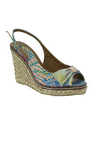Summery platform wedge with plaited straw-look covered wedge and bow trim