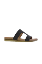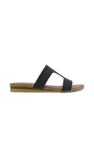 Comfy slip-on sandal with a memory foam massage dimple footbed.