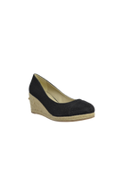 Bianca is a fabulous shoe for the hot weather; the espadrille inspired wedge has gorgeous sparkly stain fabric with a rope covered wedge and a featured toecap